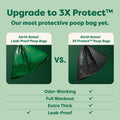 - EASY-TO-USE: To use, pull one of our poop bags away from the roll and tear on the built-in line. With the "3 Bags Left" sticker, you will always know when you are getting low.