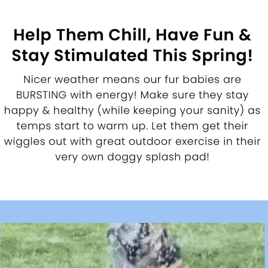 Nicer weather means our fur babies are BURSTING with energy! Make sure they stay happy & healthy (while keeping your sanity) as temps start to warm up. Let them get their wiggles out with great outdoor exercise in their very own doggy splash pad!
