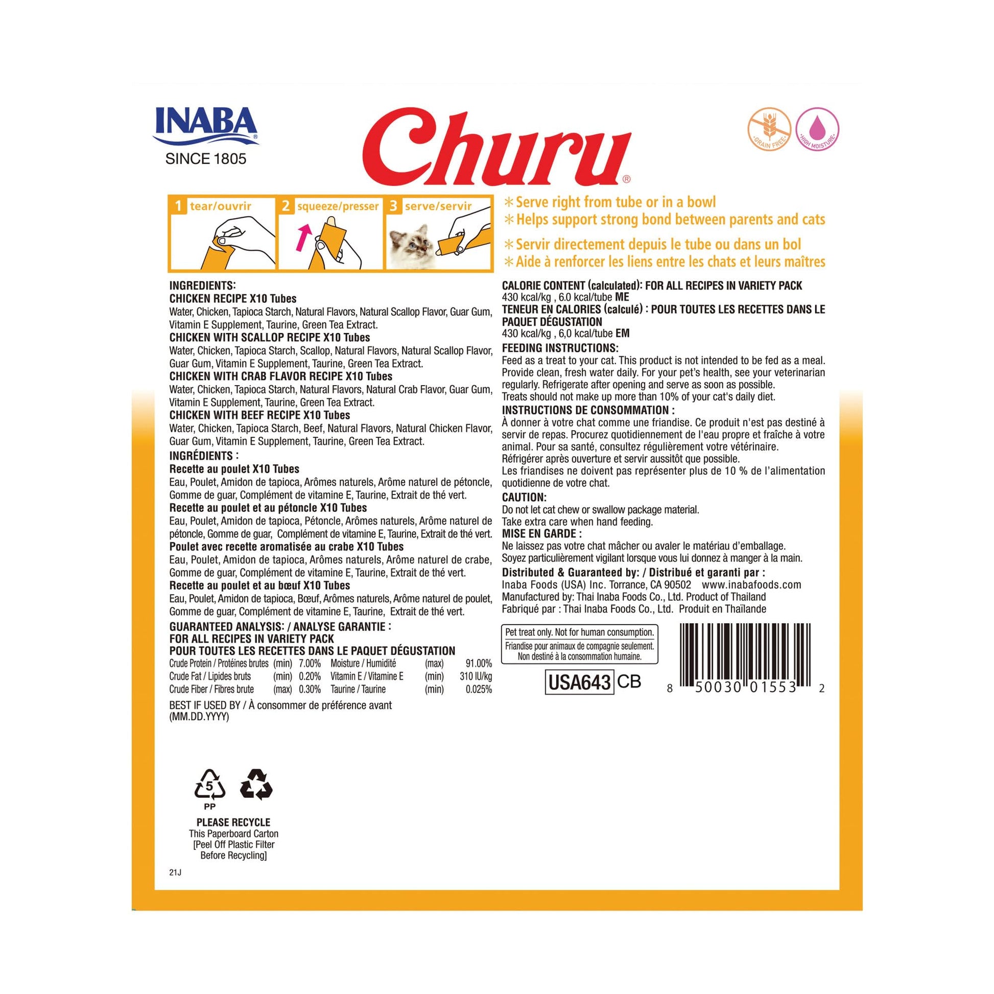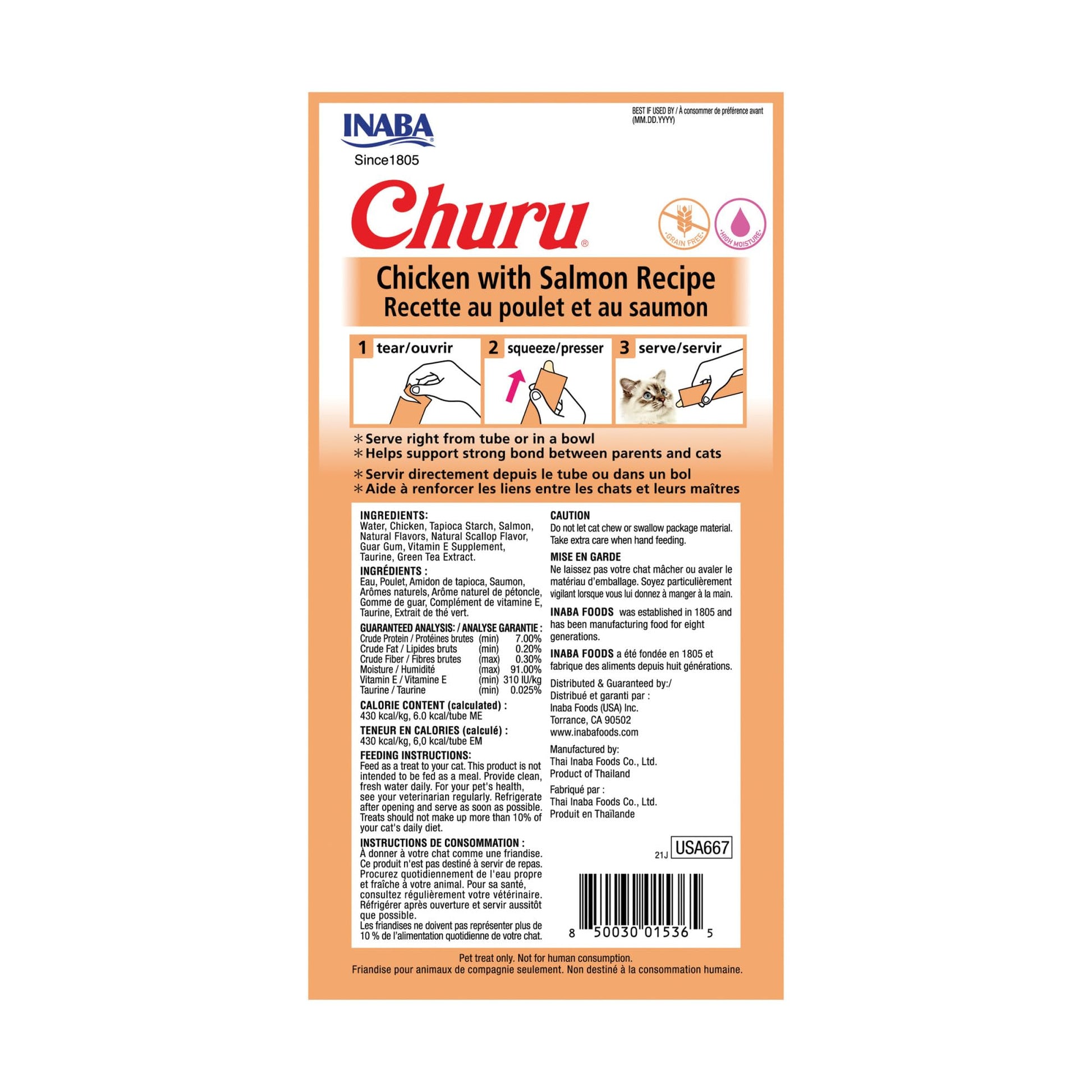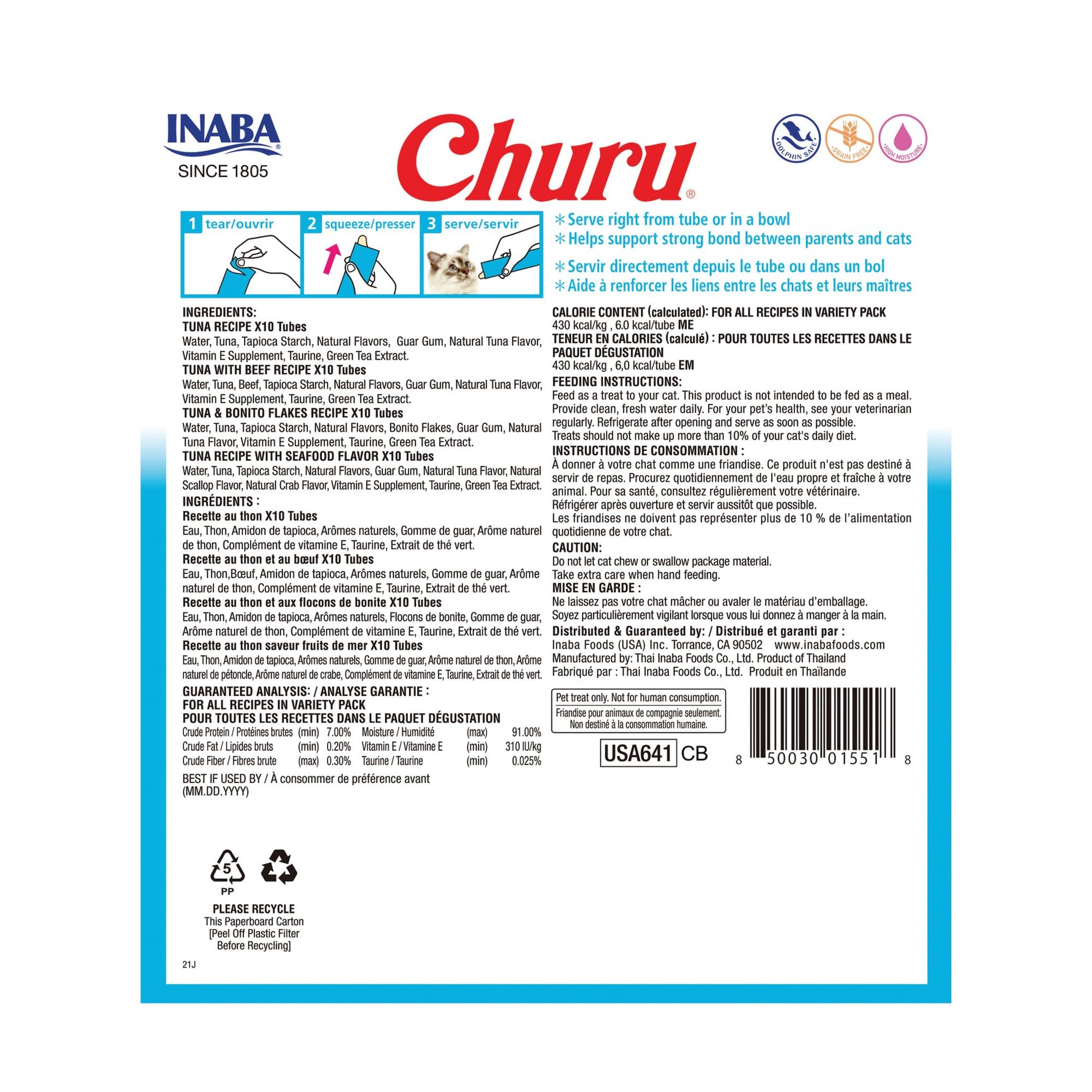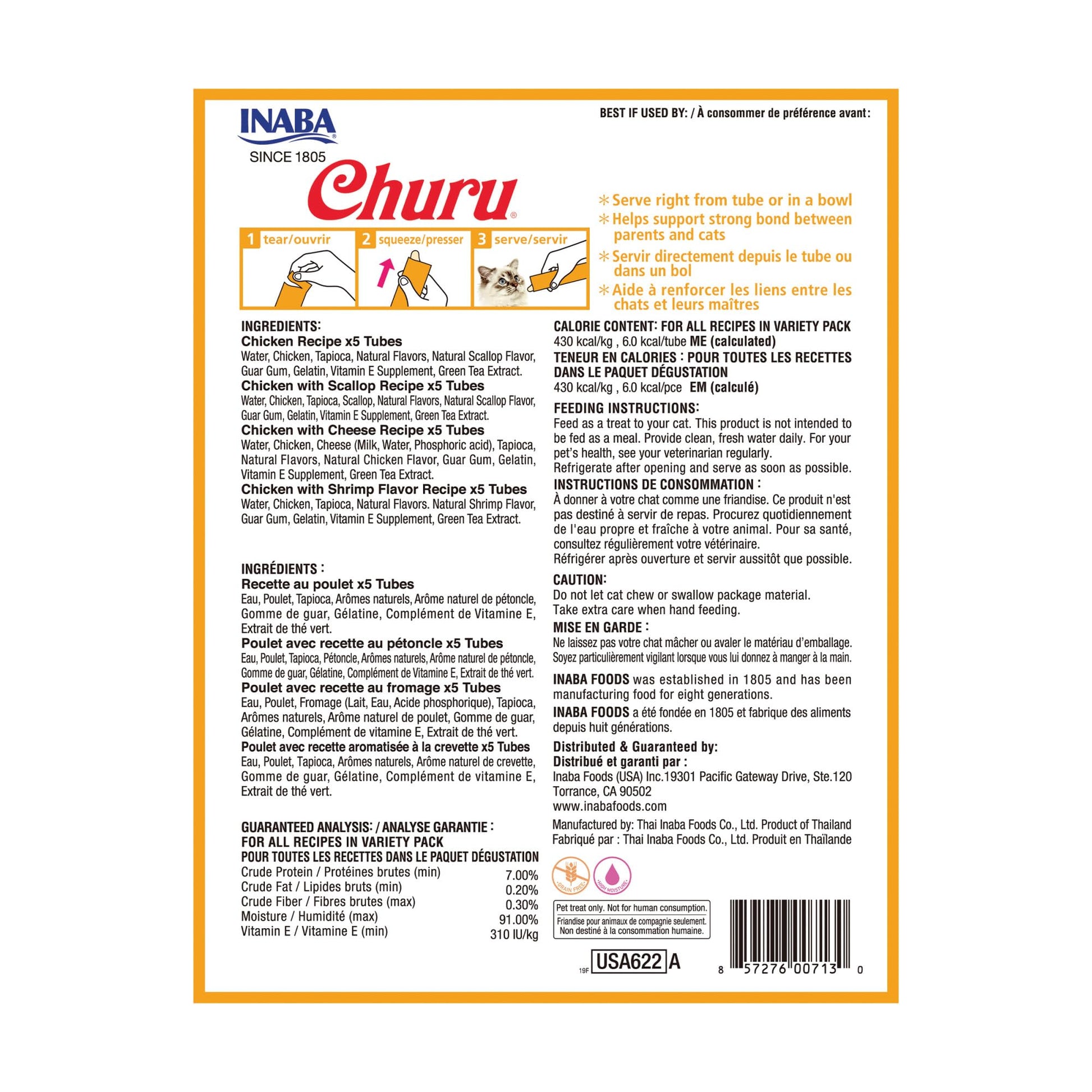 INABA Churu Cat Treats, Grain-Free, Lickable, Squeezable Creamy Purée Cat Treat/Topper with Vitamin E & Taurine, 0.5 Ounces Each Tube, 50 Tubes, Tuna & Chicken Variety