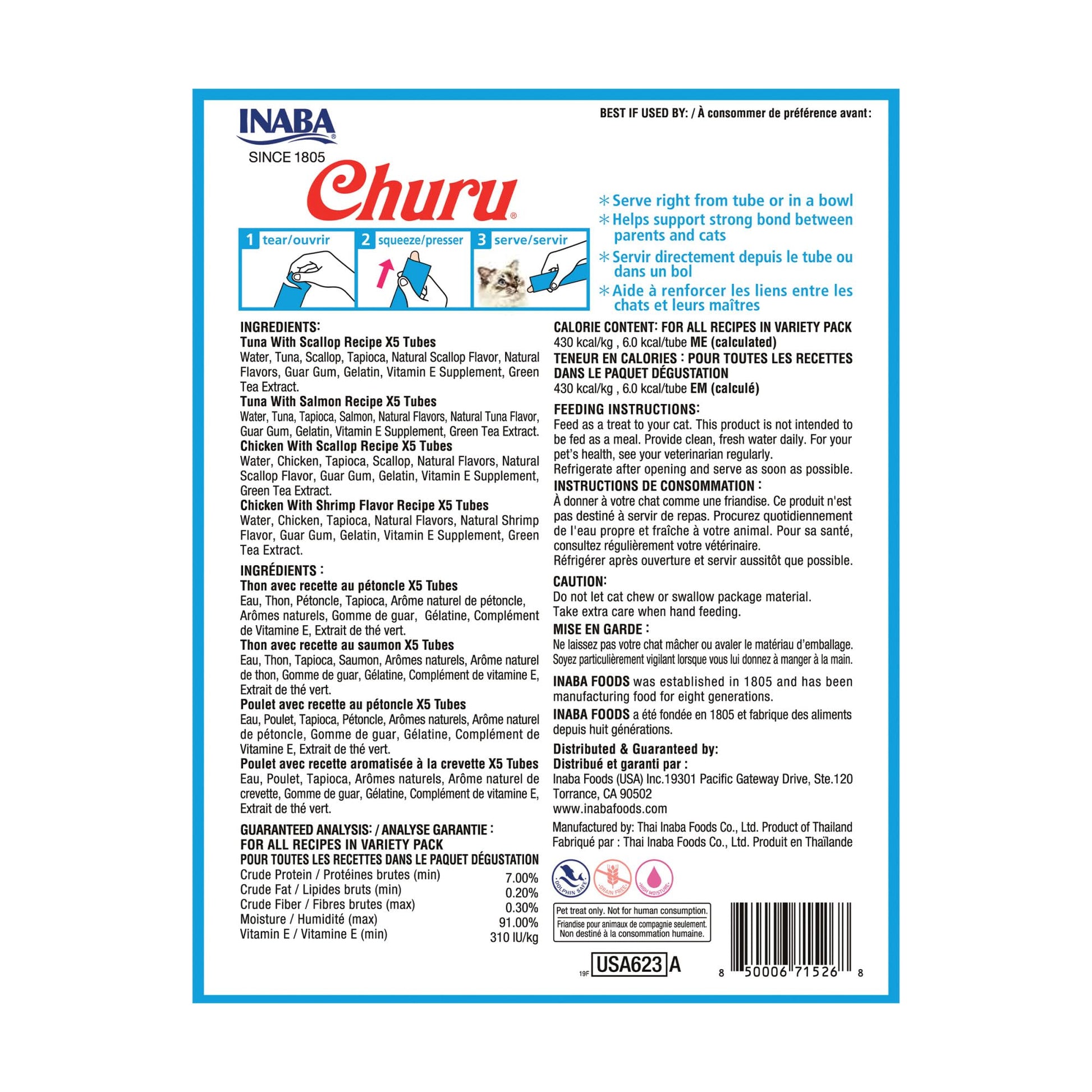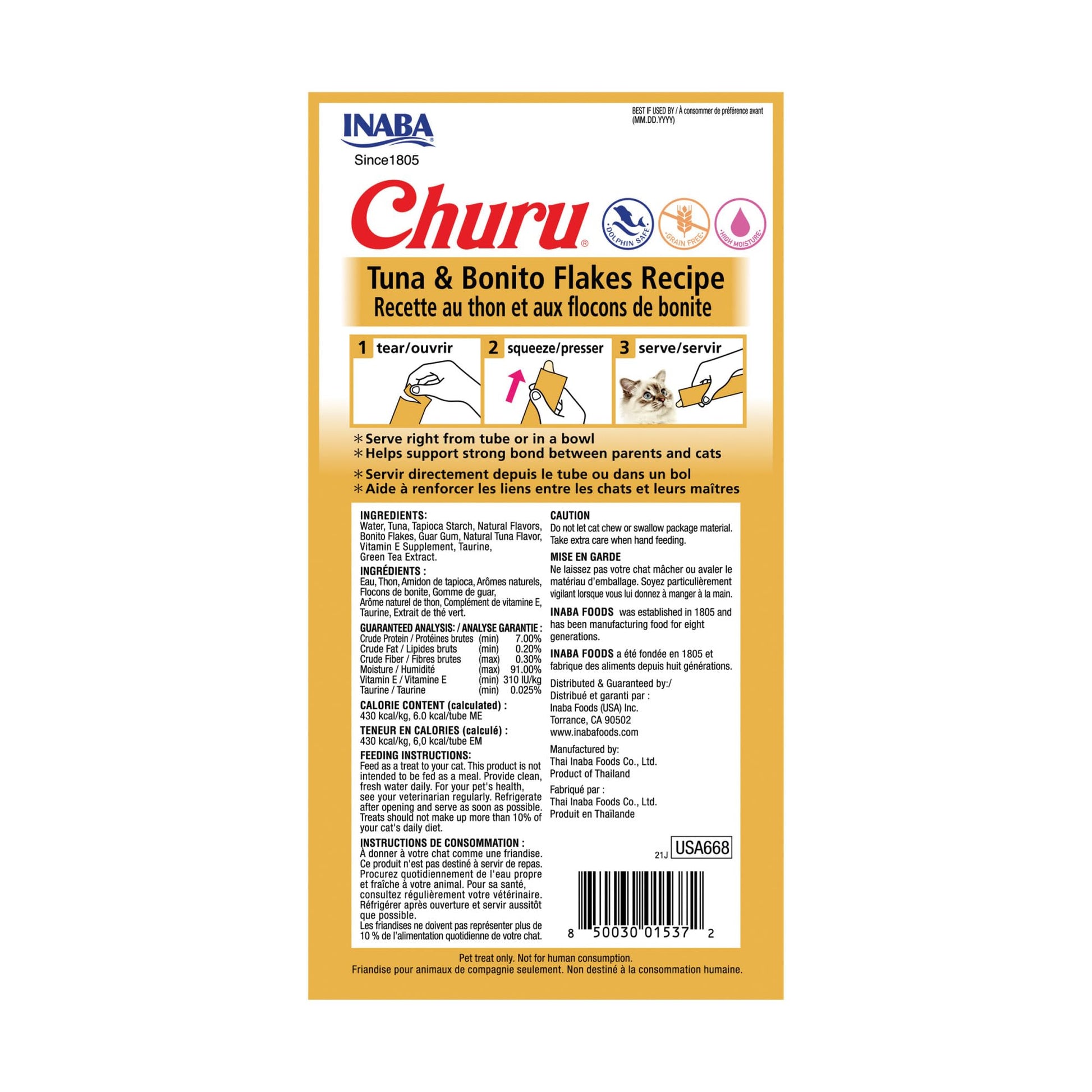 - KEEP YOUR FELINE HYDRATED WITHOUT ADDING CALORIES: Each delicious, creamy Churu tube contains 91% moisture and only 6 calories (a tenth of the calories of traditional dry cat treats), which makes it a healthy snack you can feel good about feeding